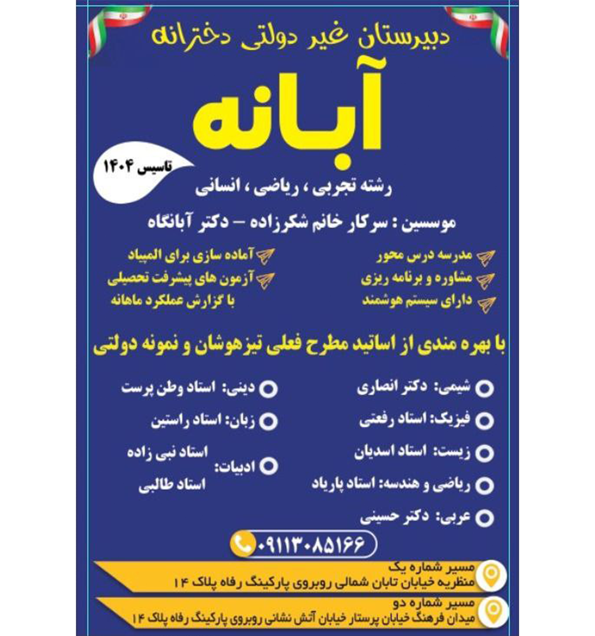 طراحی و توسعه از مجموعهی آبانه. کلیه حقوق مادی و معنوی برای دبیرستان آبانه محفوظ است